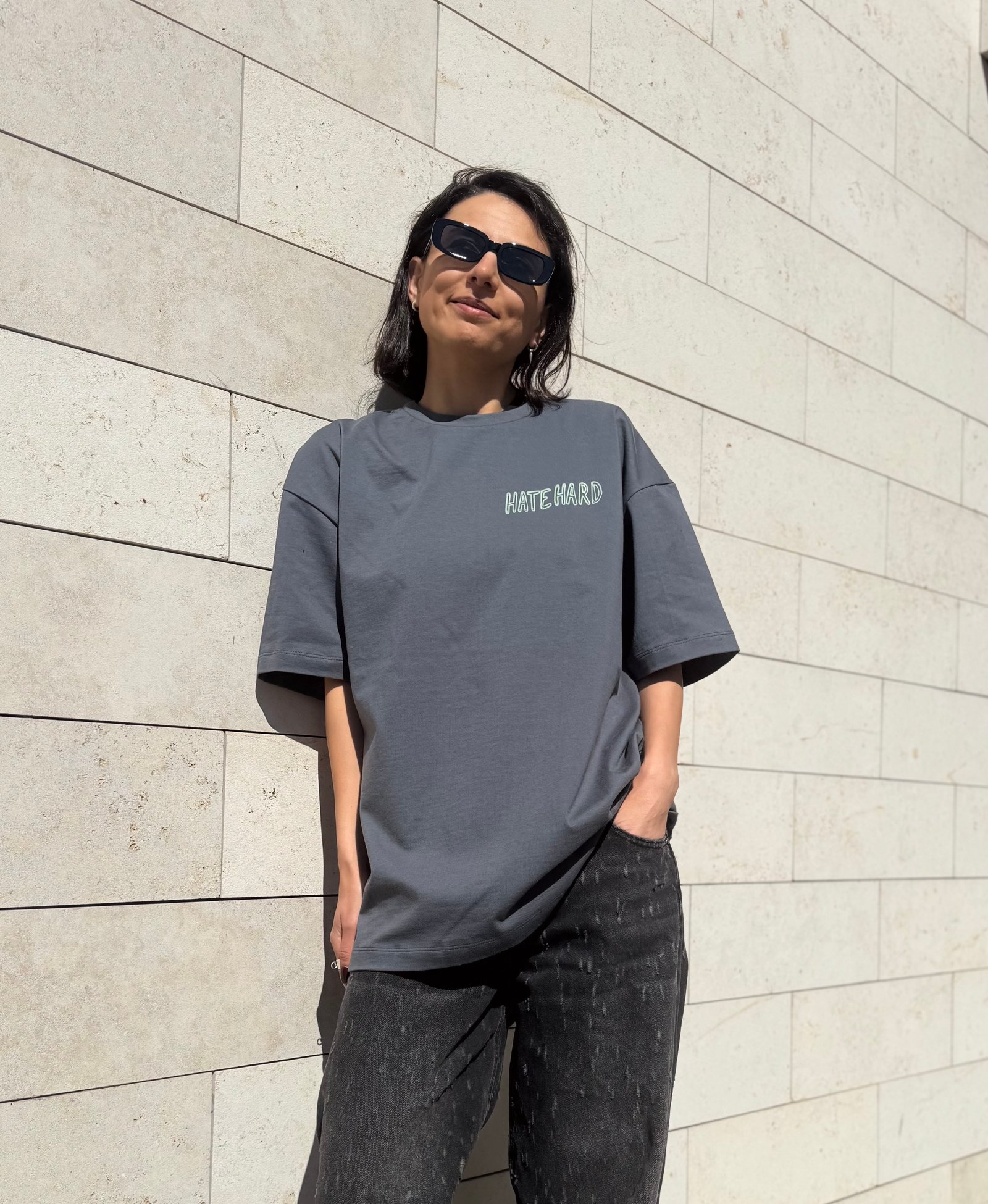Silkprinted logo in front and huge one on the back of the shirt. Unisex, baggy fit. Mucho luv to Ema for this piece of art!